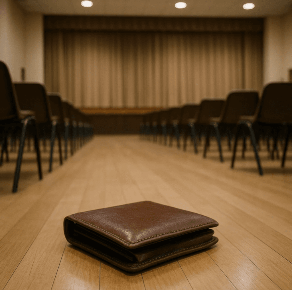 El mensaje: “…en el salón de actos hemos encontrado una cartera con documentación y dinero…”